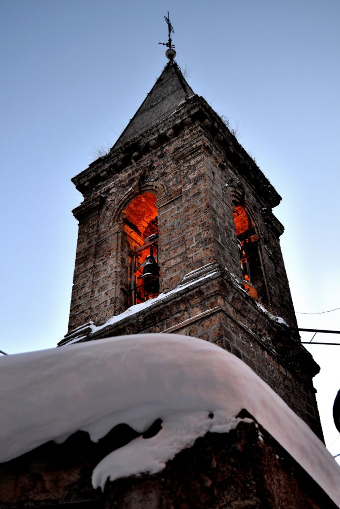 In the most elevated part of Cocullo, at the heart of its historic centre, is the Rione San Nicola, a district where one of the best preserved and most significant sections of the old town is located. Here, above the ancient walls, rises the 12th century medieval tower, a square-based structure built of squared blocks of stone. The tower was repurposed and used as a bell tower for the adjacent Church of San Nicola, which is mentioned in records dating from the 14th century. The church was severely damaged in the 1915 earthquake and was never rebuilt. Its façade shows evidence of various alterations carried out over the centuries. The site, now deconsecrated, contains only a few features of architectural interest.