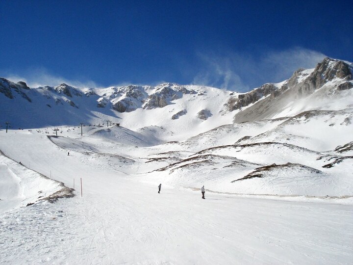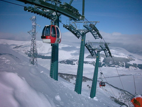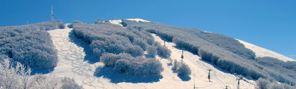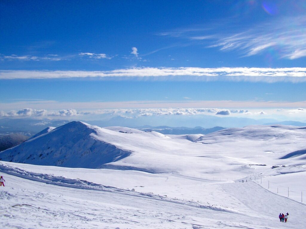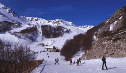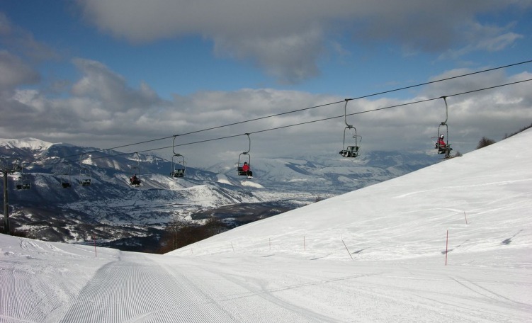 - Ovindoli, 40.9 km – 41min: Ovindoli is a scenic mountain town surrounded by peaks as high as 2487 m. It is one of the best-known communities in the Parco Sirente-Velino. In addition to possessing great natural beauty, Ovindoli has extensive and modern winter sports facilities, and this makes it a very popular winter vacation destination. The courses range in elevation from 1400 m to 2200 m, and are served by modern lifts. There is ample natural snow, but the resort has the latest automatic snow-making equipment, which can cover up to 10 km of trails. The Monte Magnola facilities are located at one end of the Altopiano delle Rocche, in a setting of stunning natural beauty. The resort has the longest magic carpet lift in Europe (235 m), and skiers can obtain a pass that also allows them to ski at Campo Felice, expanding their range of possibilities. Cross-country ski enthusiasts can take advantage of the trails at Piani di Pezza, which cross the splendid beech wood at Valle Cerchiata (there is a 3-km loop and a 5-km loop, at an elevation of 1900 m). The resort has 21 downhill runs totalling 30 km, which are served by three three-seat chairlifts, two six-seat chairlifts, one cable car, four magic carpets and one ski lift. There is also a modern and well-equipped snow park. Ovindoli is part of the “Tre Nevi” (three snows) complex, which also includes Campo Felice and Campo Imperatore.