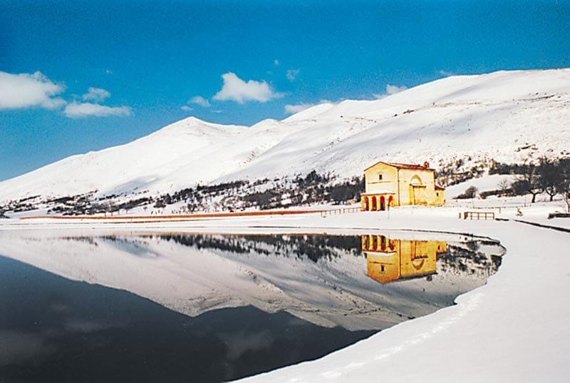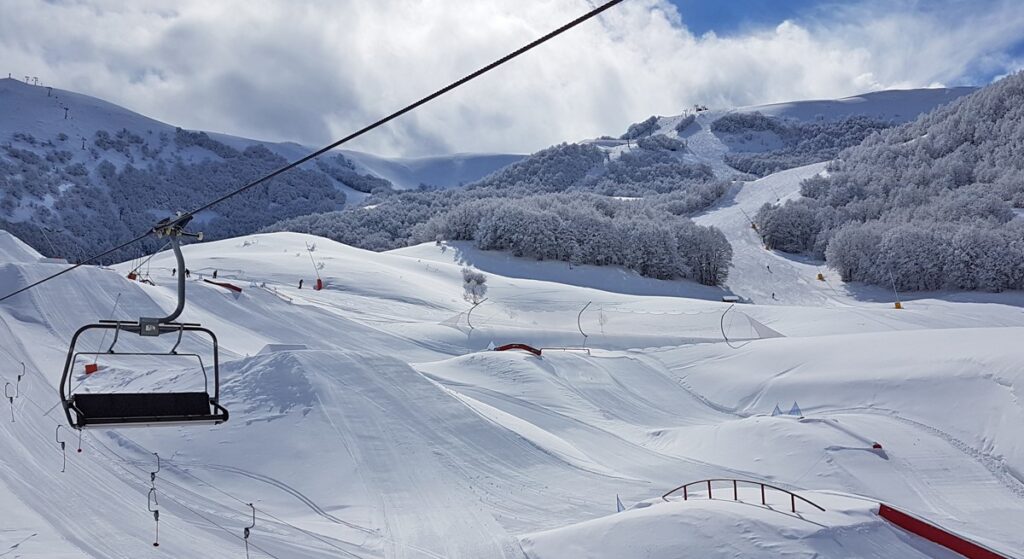 - Campo Felice, 48.8 km – 50min: An impressive array of lifts has been put in place to serve the resort’s numerous (20, for a total distance of 40 km) and diversified courses: eight chairlifts (five of them four-seaters), two ski lifts and two rope lifts. The courses range in elevation from 1400 m to 2064 m. Skiers can purchase a ski pass that will also give them access to the slopes at Ovindoli (Monte Magnola). Campo Felice is one of the few ski resorts in central Italy where it is possible to ski from one mountain slope to another, namely, from Campo Felice to the Altopiano delle Rocche, which has facilities at Rocca di Cambio, Rocca di Mezzo and Rovere. Cross-country skiers can take advantage of the trails on the plateau, such as the Monte Puzzillo loop and various tracks appropriate for ski touring. Campo Felice also has a 90-m snow tubing track, an 800-m snow park, and a recreation area known as “Fun Park”.
