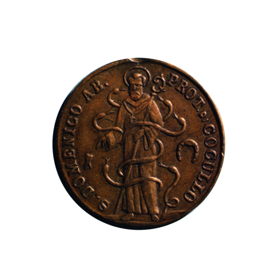 San Domenico morì il 22 Gennaio 1031 all’età di 80 anni e mezzo. Oltre al santo dente ed al ferro della mula, anche un ossetto del corpo di San Domenico è conservato nel Santuario consacrato al Signore e dedicato al Santo l’11 Settembre 1746 dal Vescovo di Valva e Sulmona mons. Pietrantonio Corsignani. In questo santuario – scrive ancora Don Adolfo – Dio glorifica il suo servo con assidui miracoli a pro dei devoti che continuamente vi accorrono per essere preservati o liberati dalla rabbia, veleni e dolori di denti. Chiunque sia venuto in passato o venga ora al santuario di San Domenico è stato o è esaudito. Tutti fanno toccare dal santo dente laccetti, corone, pane, cereali per gli animali. Dice una cronistoria: “Non solamente nel regno di Napoli, ma nello stato papale, nella Lombardia ed in altri stati o regni lontani si stima felice chi tiene qualche devozione legata al santo dente. Né deve tacersi, a gloria di Dio e del santo, che in tutto il territorio di Cocullo, benché vi si rinvengano animali velenosi (serpi, vipere, aspidi ed ogni altra specie) pure sono così familiari come puossi vedere il primo Giovedì di Maggio che quei cittadini domesticamente li trattano, ci scherzano, ponendoli eziandio in bocca, senza nessun nocumento”.