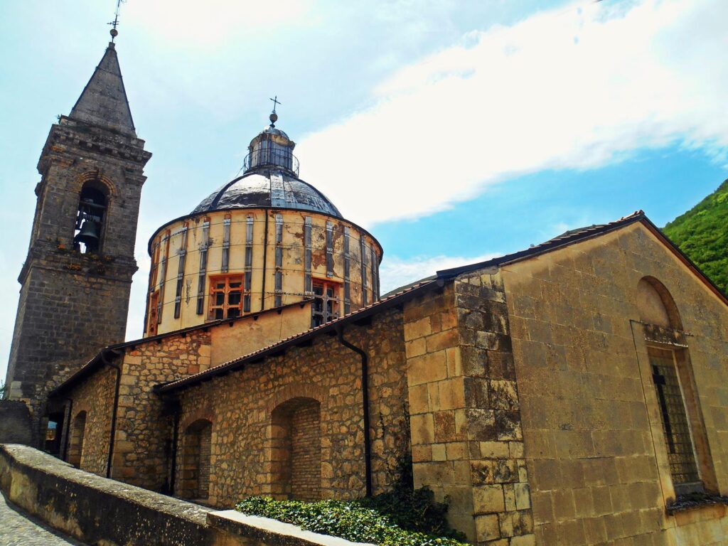 Il centro della festa religiosa è il Santuario di San Domenico che sorge sul sito precedentemente occupato da una chiesa più antica e più piccola, dedicata a Sant’Egidio, della quale resta uno splendido portale settecentesco riccamente decorato che funge da entrata laterale. Questo portale è arricchito da una bella porta di legno intagliato. La facciata, la cupola e il campanile sono stati costruiti nei primi decenni del XX secolo; l’interno, a navata unica, è stato restaurato ed affrescato nel corso del secolo, mentre più antico è il pulpito ligneo riccamente intagliato. Molto importante per il culto è la Cappella di San Domenico, dove è custodita la statua del santo, posta davanti ad una piccola grotta scavata nella roccia dove i fedeli raccolgono la terra benedetta per usi rituali. Sulla sinistra della cappella c’è una campanella che viene tirata con i denti dai fedeli a scopo antiodontalgico. La chiesa custodiva anche tre croci professionali d’argento del XV secolo, di arte sulmonese, numerosi reliquiari e varie suppellettili sacre, rubate alcuni anni fa.