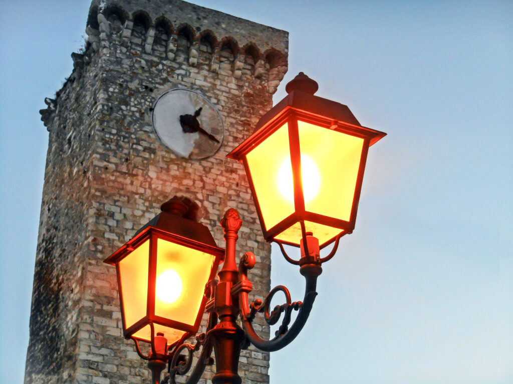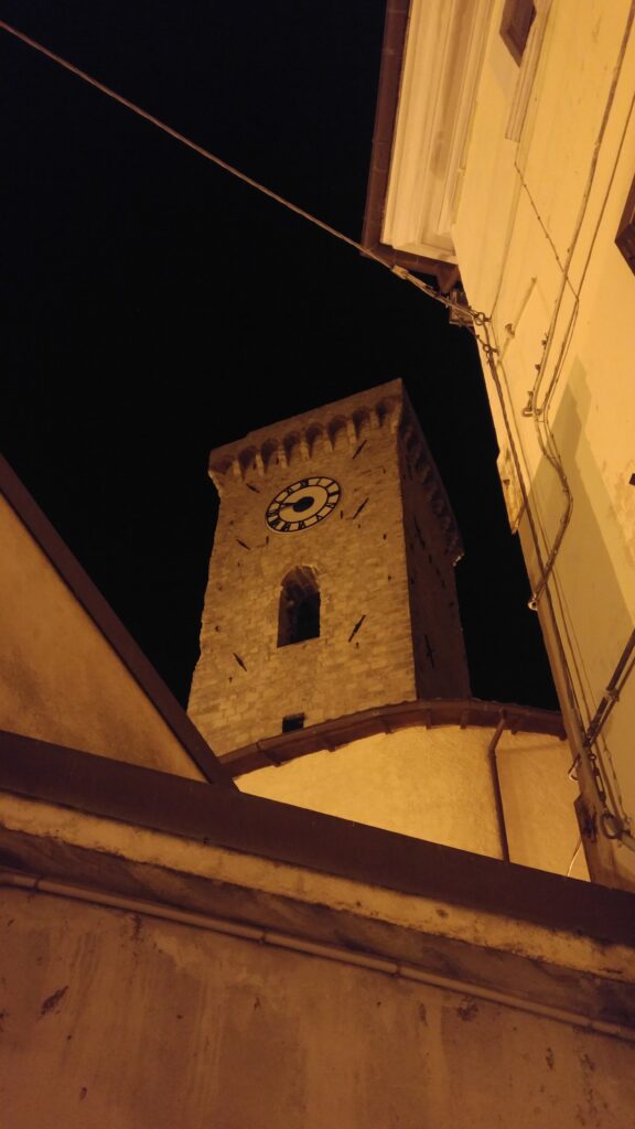 Oltrepassata Via Porta di Manno si giunge a Piazza Aracella: da qui è possibile ammirare il lato più conservato della torre, sul quale fu poi apposto l’orologio.