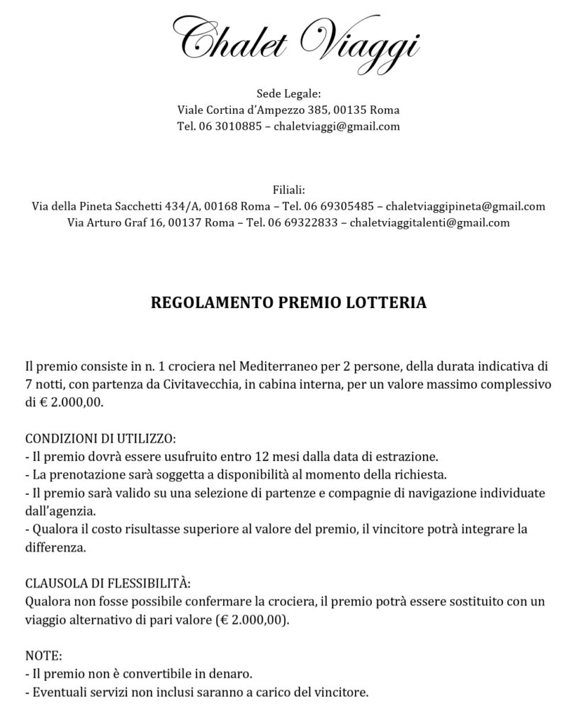 REGOLAMENTO DELLA LOTTERIA