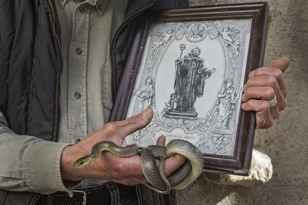 Da centinaia e centinaia di anni quell’omaggio viene ripetuto in Cocullo ogni primo Maggio, quando, all’uscita della Statua dal Santuario per la Processione, i Serpari si stringono attorno a San Domenico per offrirgli i numerosi serpenti catturati nelle zone circostanti il paese.