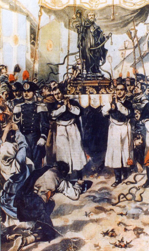 Dopo i molteplici miracoli e portenti straordinari operati dal Santo nel liberare i cocullesi dalle morsicature di vipere e serpenti velenosi, nel far uscire dallo stomaco delle persone serpenti che vi erano penetrati, quella usanza pagana fu trasformata dai cocullesi in un rito di religioso omaggio cattolico a San Domenico, come atto di filiale gratitudine al Santo che tangibilmente e praticamente si era dimostrato, al contrario della muta ed inerme Dea Angizia, liberatore dalle tristi conseguenze del veleno dei serpenti. Alla Chiesa Cattolica, che non disdegna di venerare Sant’Antonio, che a Rimini parla ai pesci a dispetto della sordità spirituale umana, e un San Francesco che conversa dolcemente e affabilmente con gli uccelli, conviene anche San Domenico che, proteggendo dai morsi dei serpenti, aiuta a liberare le anime dagli assalti del serpente infernale, eterno nemico di Dio e dell’uomo.